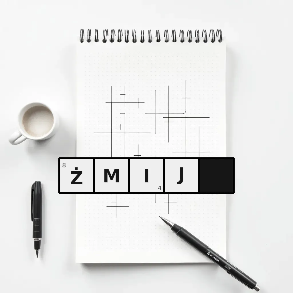 Słowo „żmij” ma 4 znaki (bez spacji i łączników).
