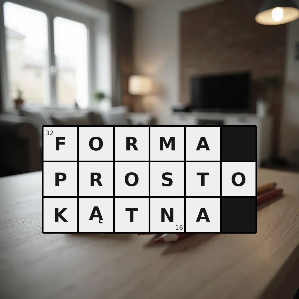 Słowo „forma prostokątna” ma 16 znaków (bez spacji i łączników).