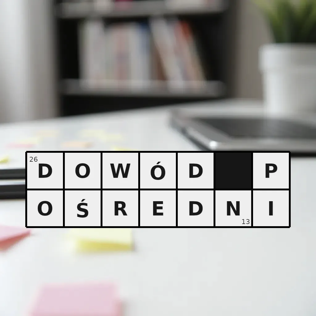 Słowo „dowód pośredni” ma 13 znaków (bez spacji i łączników).