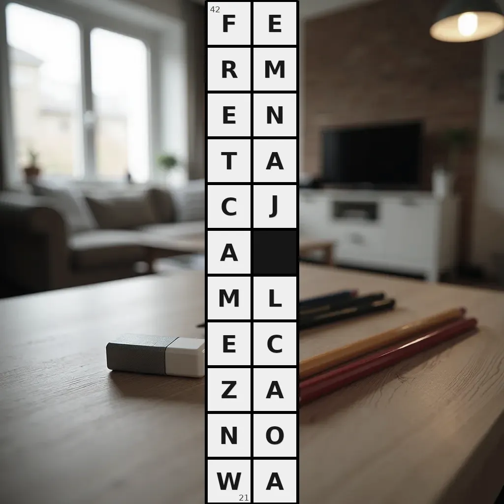 Zawiera litery: A, A, A, A, C, C, E, E, E, F, J, L, M, M, N, N, O, R, T, W, Z
