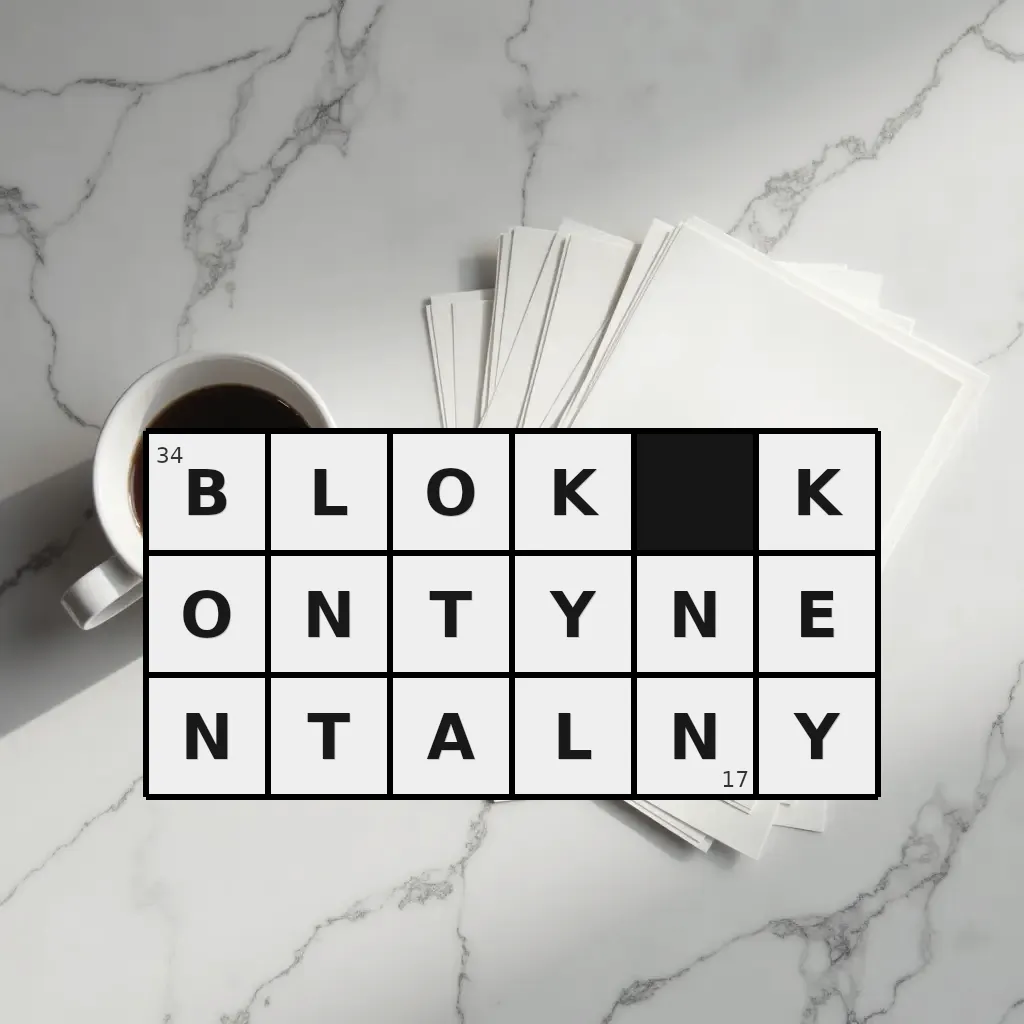 Słowo „blok kontynentalny” ma 17 znaków (bez spacji i łączników).