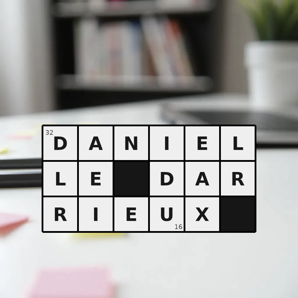 Słowo „danielle darrieux” ma 16 znaków (bez spacji i łączników).