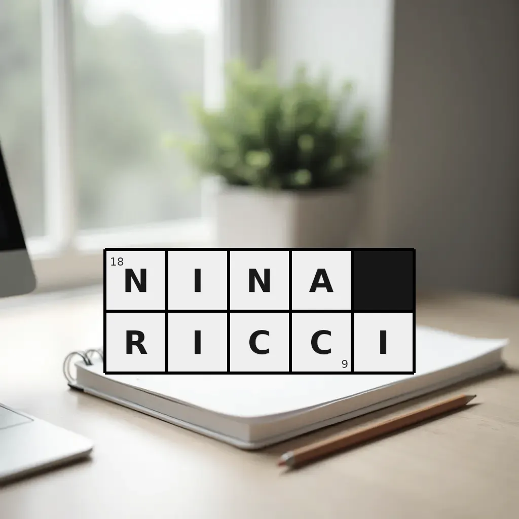 Słowo „nina ricci” ma 9 znaków (bez spacji i łączników).
