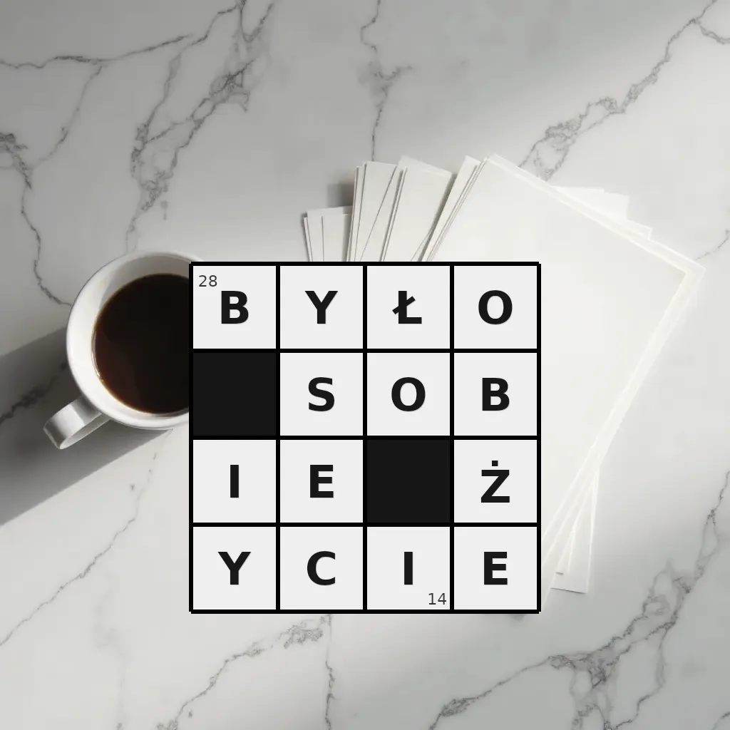 Słowo „było sobie życie” ma 14 znaków (bez spacji i łączników).