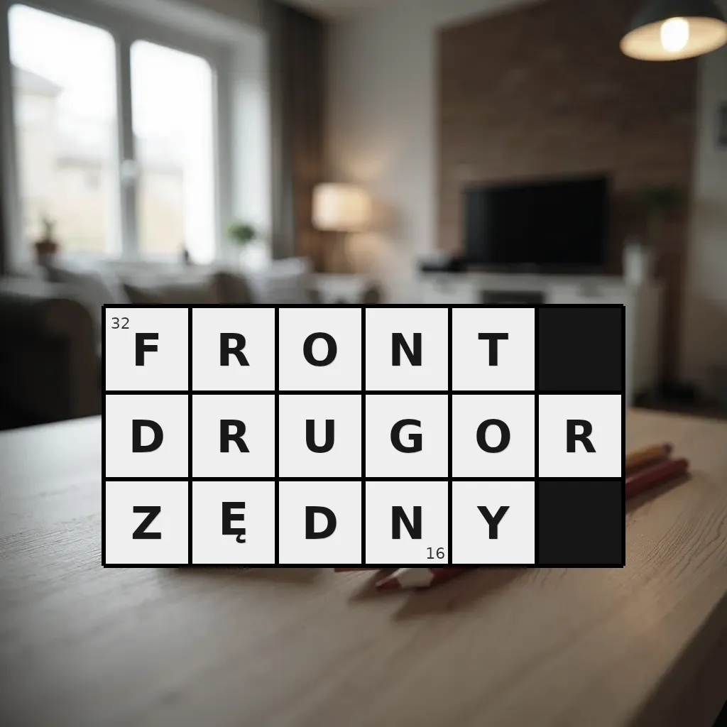 Słowo „front drugorzędny” ma 16 znaków (bez spacji i łączników).