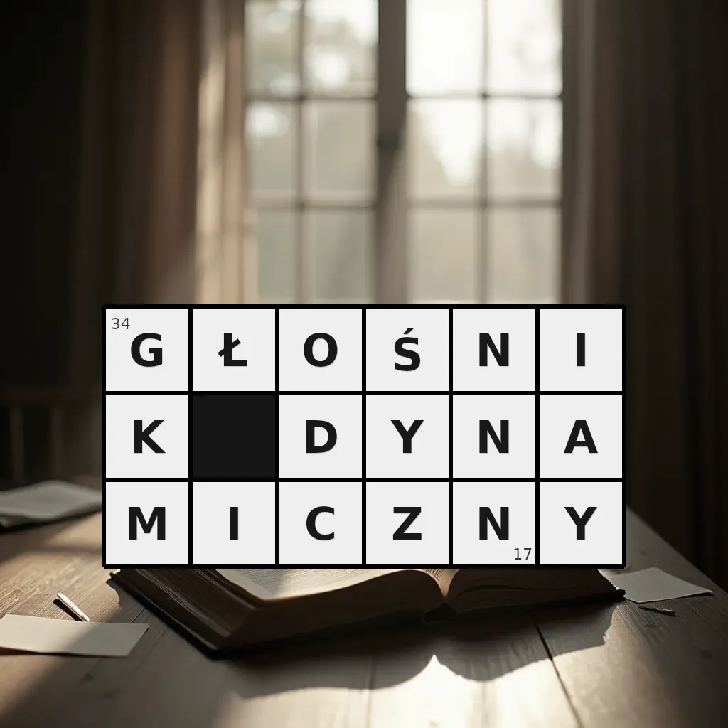 Słowo „głośnik dynamiczny” ma 17 znaków (bez spacji i łączników).