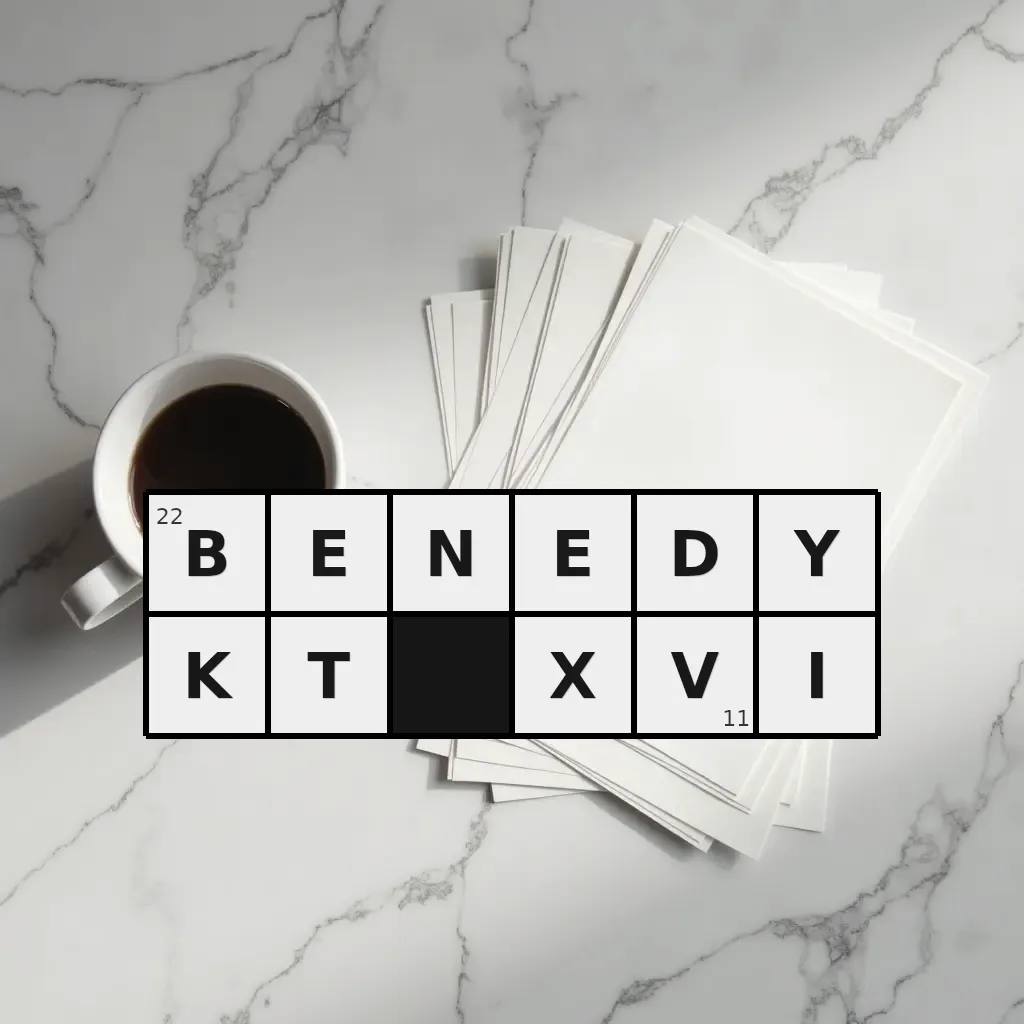 Słowo „benedykt xvi” ma 11 znaków (bez spacji i łączników).