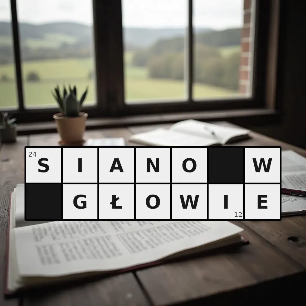 Słowo „siano w głowie” ma 12 znaków (bez spacji i łączników).