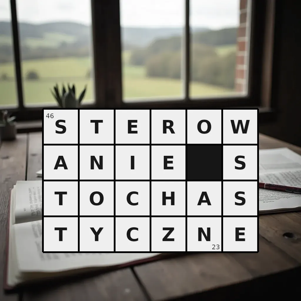 Słowo „sterowanie stochastyczne” ma 23 znaki (bez spacji i łączników).