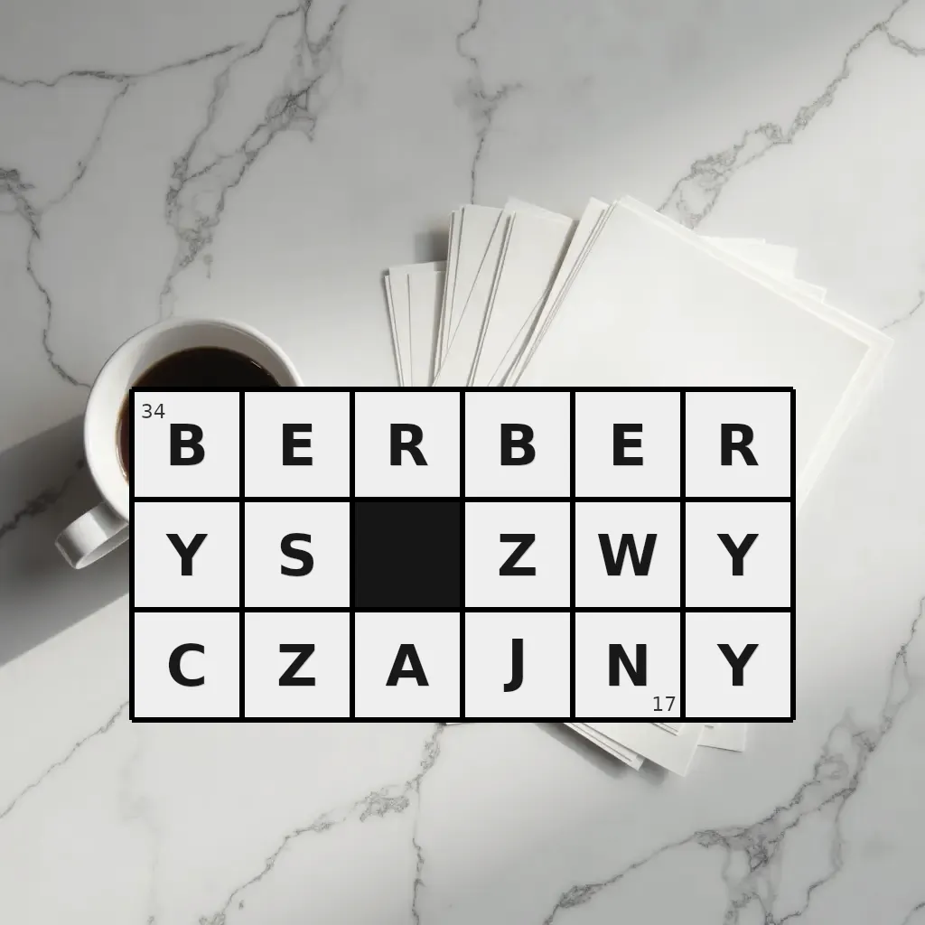 Zawiera litery: A, B, B, C, E, E, J, N, R, R, S, W, Y, Y, Y, Z, Z