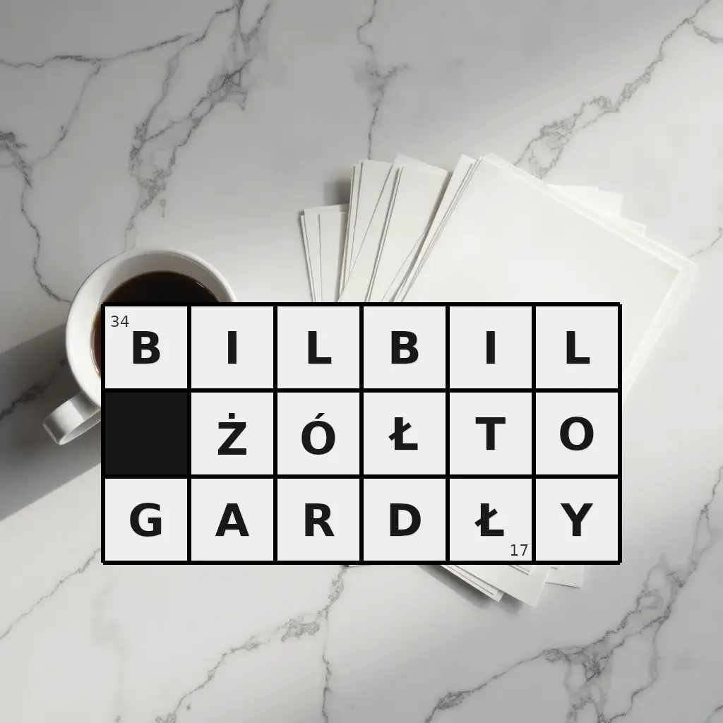 - bilbil jednobarwny — 17 znaków