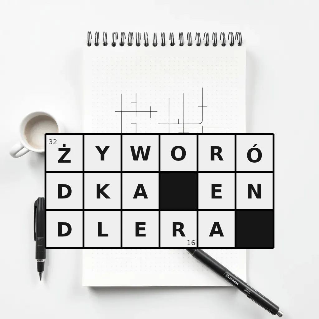 Zawiera litery: A, A, D, D, E, E, K, L, N, O, R, R, W, Y, Ó, Ż