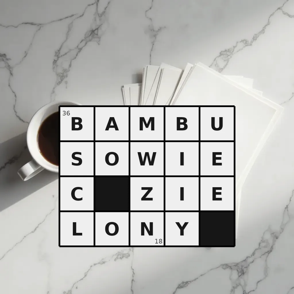 Słowo „bambusowiec zielony” ma 18 znaków (bez spacji i łączników).