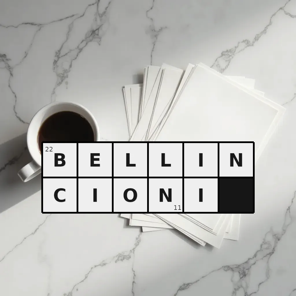 Słowo „bellincioni” ma 11 znaków (bez spacji i łączników).