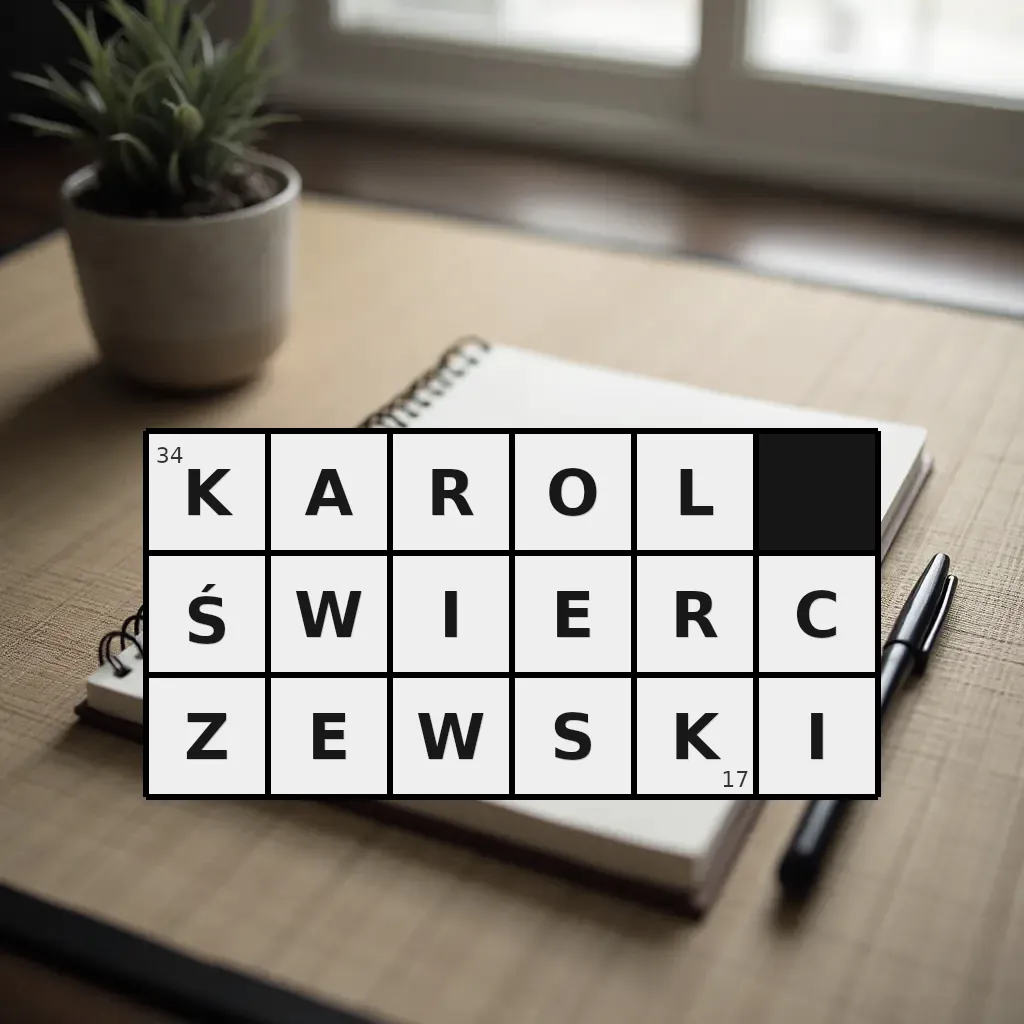 Słowo „karol świerczewski” ma 17 znaków (bez spacji i łączników).