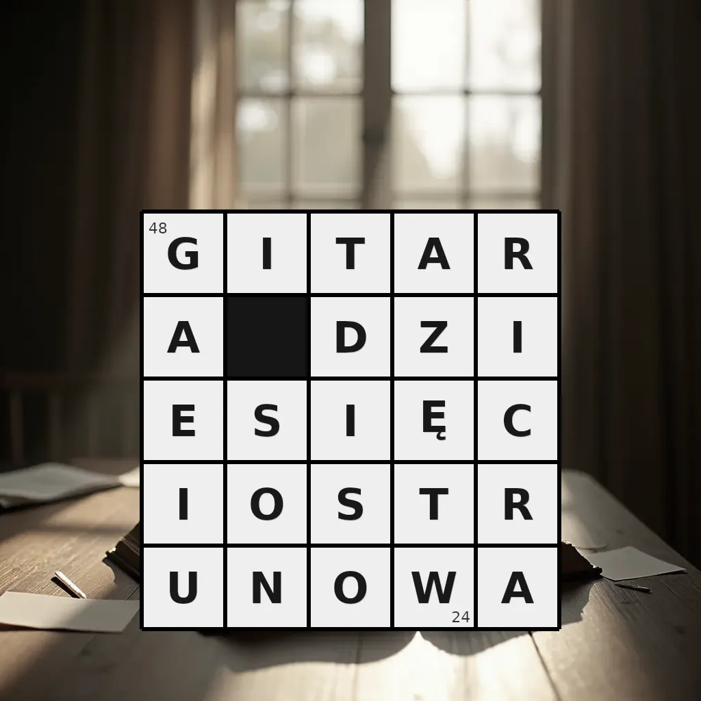 Słowo „gitara dziesięciostrunowa” ma 24 znaki (bez spacji i łączników).