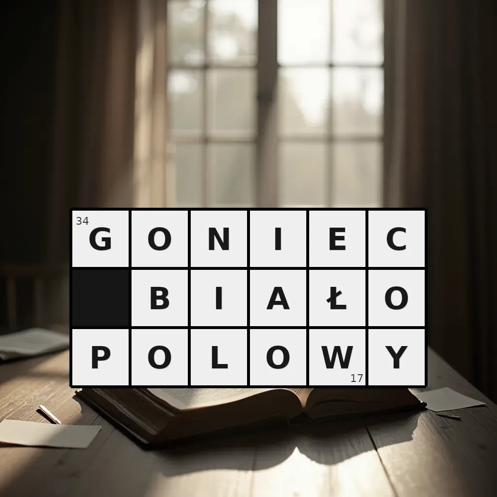 Słowo „goniec białopolowy” ma 17 znaków (bez spacji i łączników).