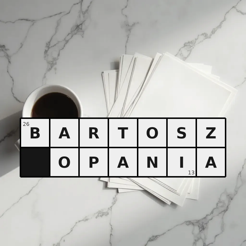 Słowo „bartosz opania” ma 13 znaków (bez spacji i łączników).