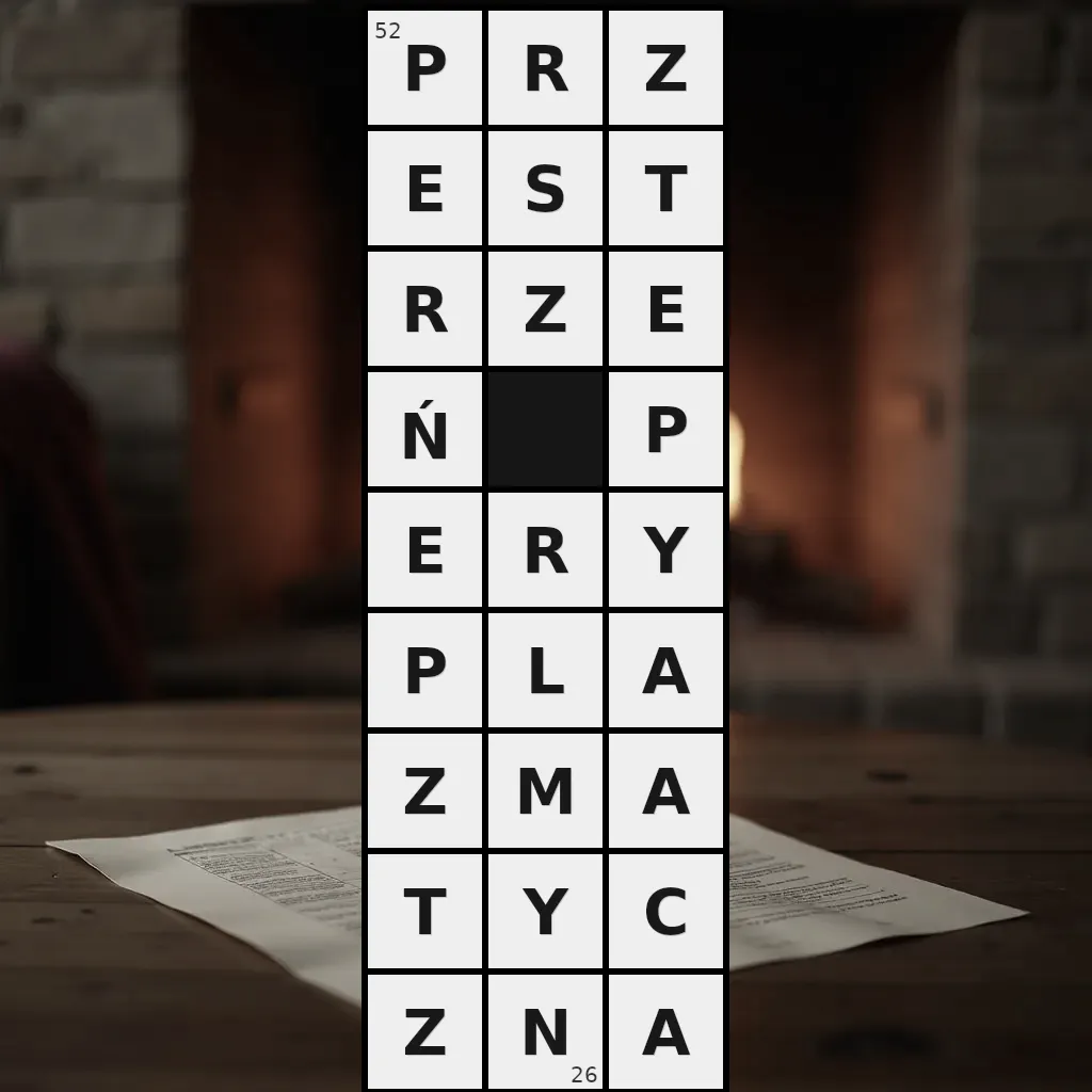 Zawiera litery: A, A, A, C, E, E, E, L, M, N, P, P, P, R, R, R, S, T, T, Y, Y, Z, Z, Z, Z, Ń