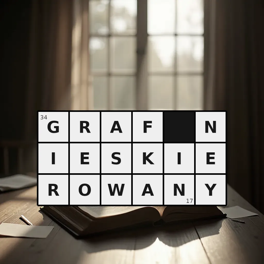 Słowo „graf nieskierowany” ma 17 znaków (bez spacji i łączników).