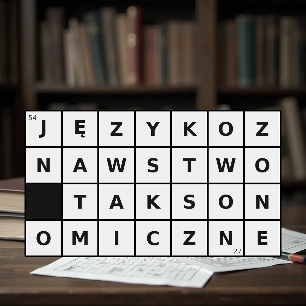 Słowo „językoznawstwo taksonomiczne” ma 27 znaków (bez spacji i łączników).