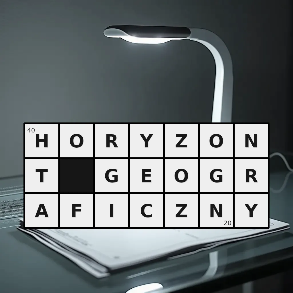Słowo „horyzont geograficzny” ma 20 znaków (bez spacji i łączników).