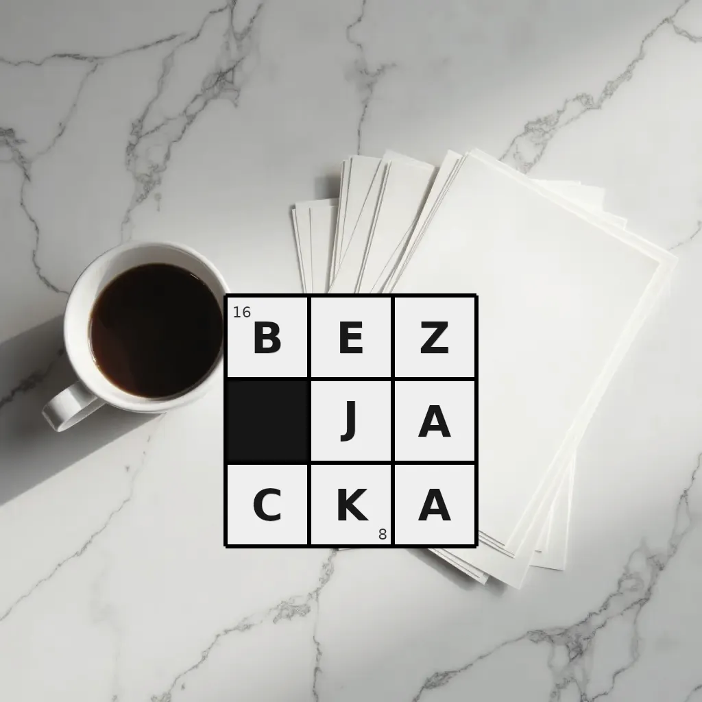 Słowo „bez jacka” ma 8 znaków (bez spacji i łączników).