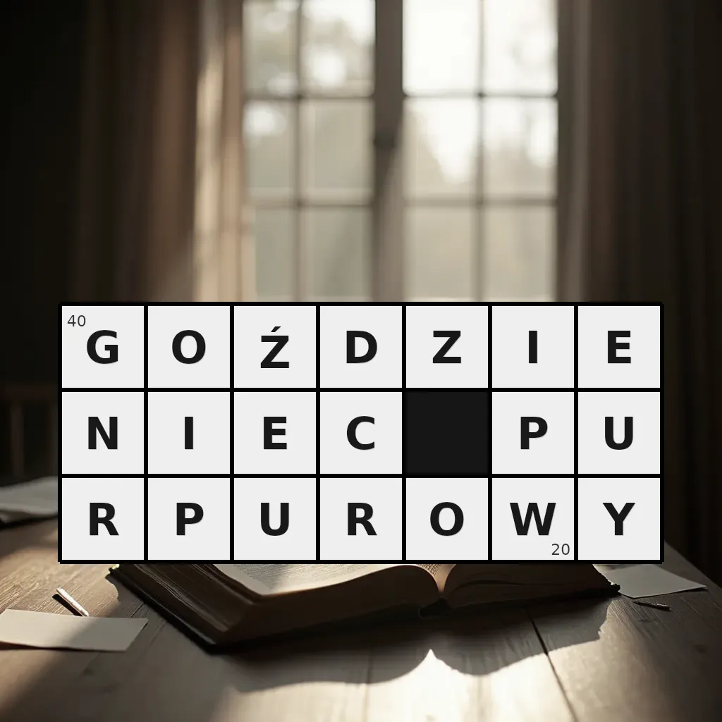 Słowo „goździeniec purpurowy” ma 20 znaków (bez spacji i łączników).