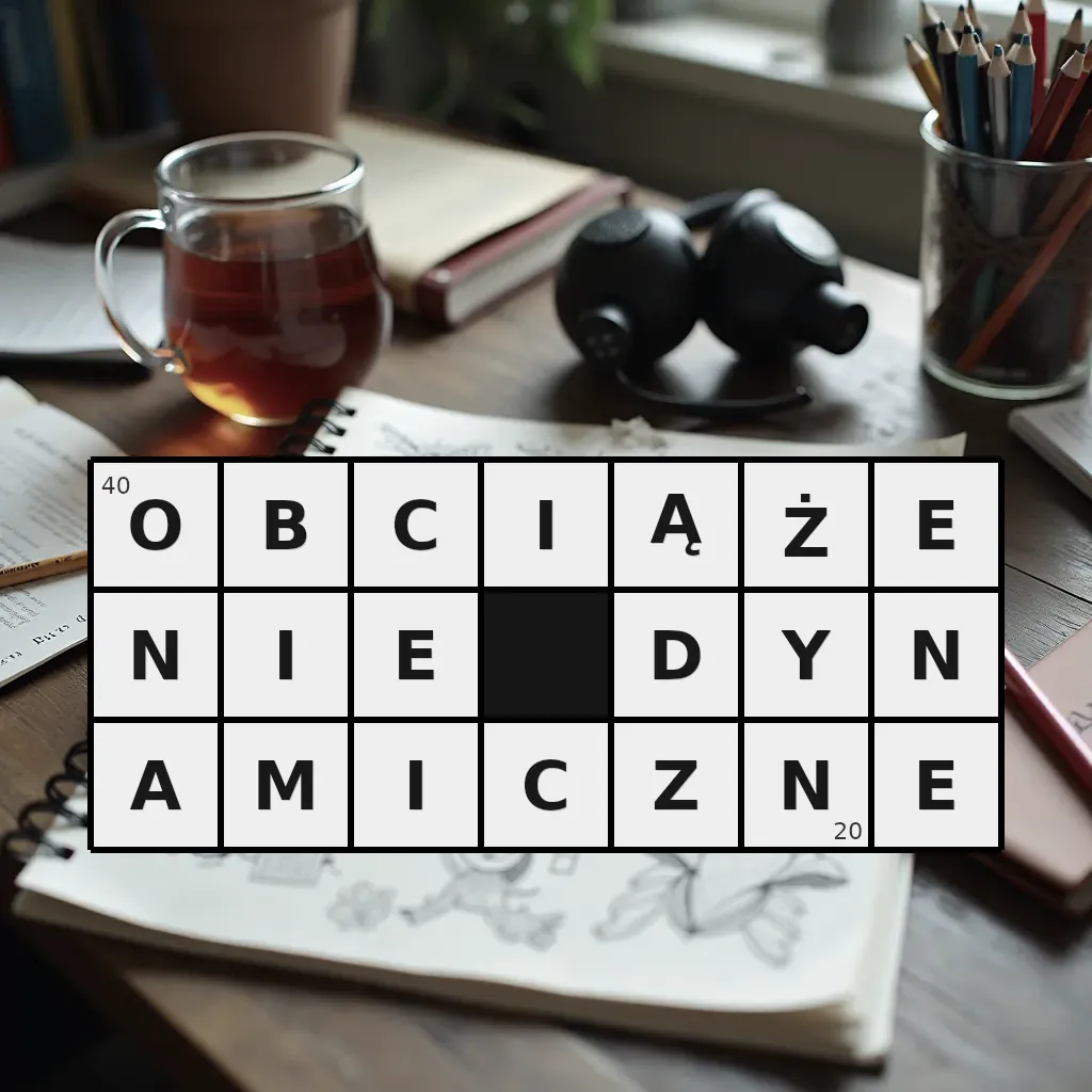 Słowo „obciążenie dynamiczne” ma 20 znaków (bez spacji i łączników).