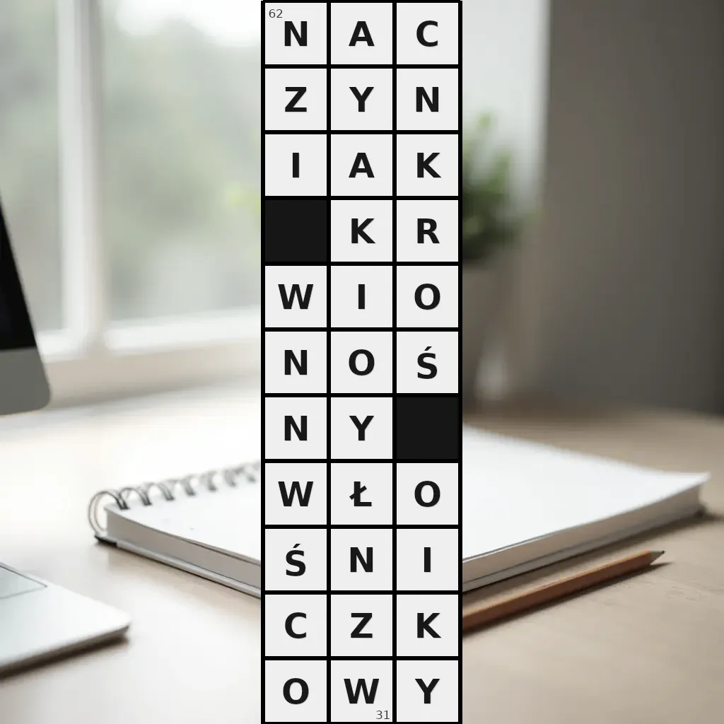 Zawiera litery: A, A, C, C, I, I, I, K, K, K, N, N, N, N, N, O, O, O, O, R, W, W, W, Y, Y, Y, Z, Z, Ł, Ś, Ś