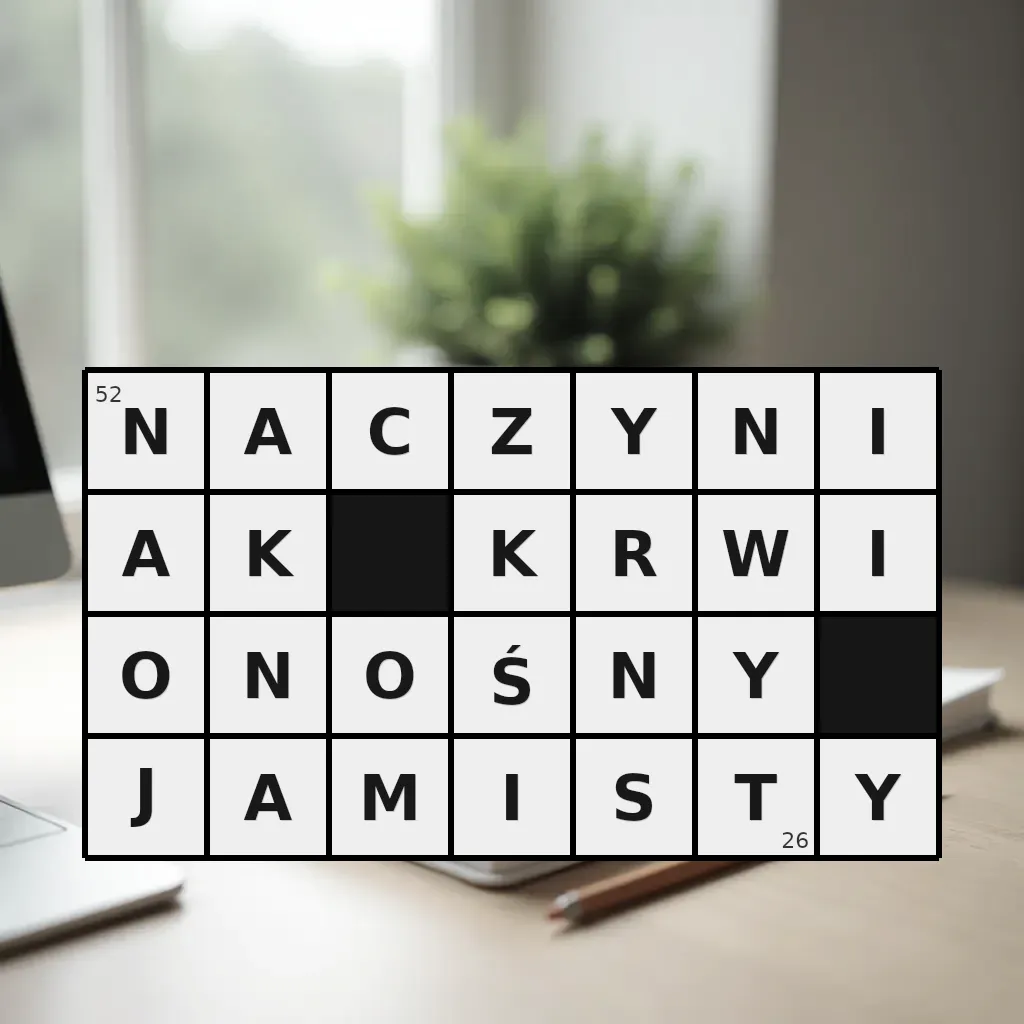 Słowo „naczyniak krwionośny jamisty” ma 26 znaków (bez spacji i łączników).