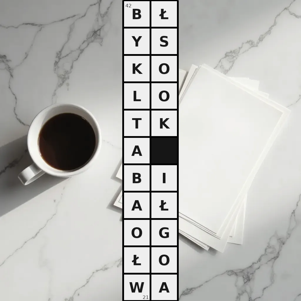 Słowo „błyskolotka białogłowa” ma 21 znak (bez spacji i łączników).
