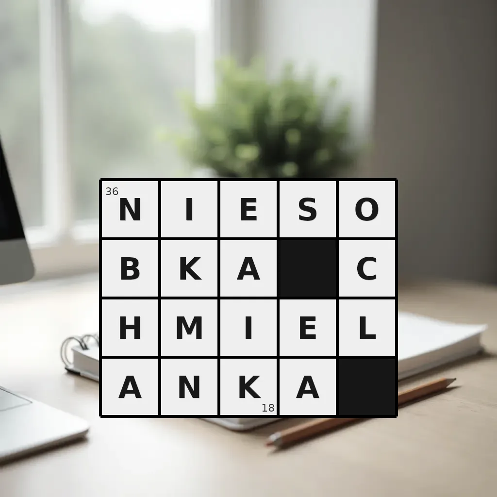 Zawiera litery: A, A, A, B, C, E, E, H, I, I, K, K, L, M, N, N, O, S
