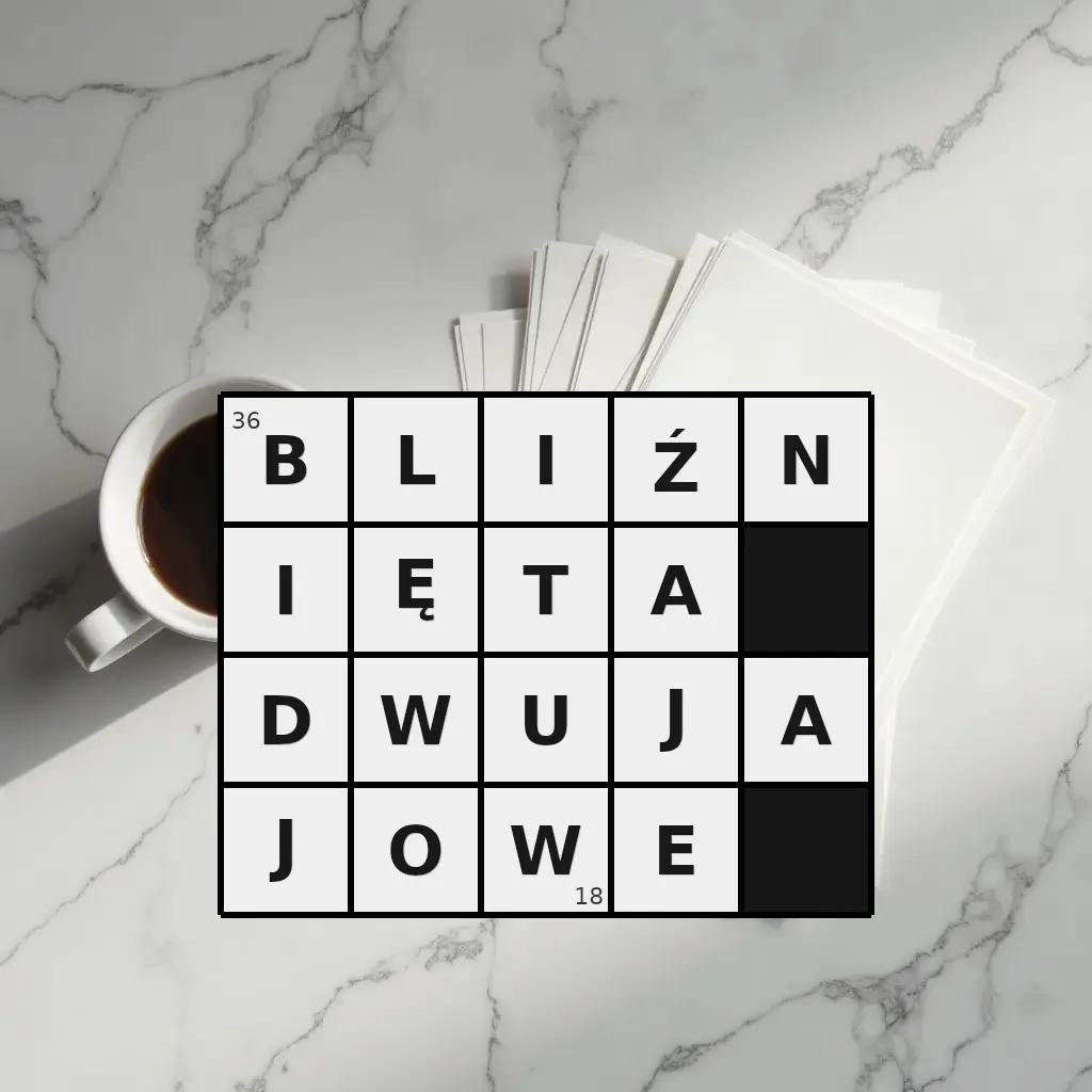 Słowo „bliźnięta dwujajowe” ma 18 znaków (bez spacji i łączników).