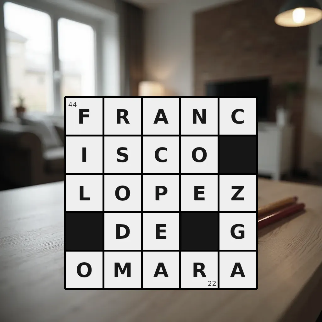 Słowo „francisco lopez de gomara” ma 22 znaki (bez spacji i łączników).