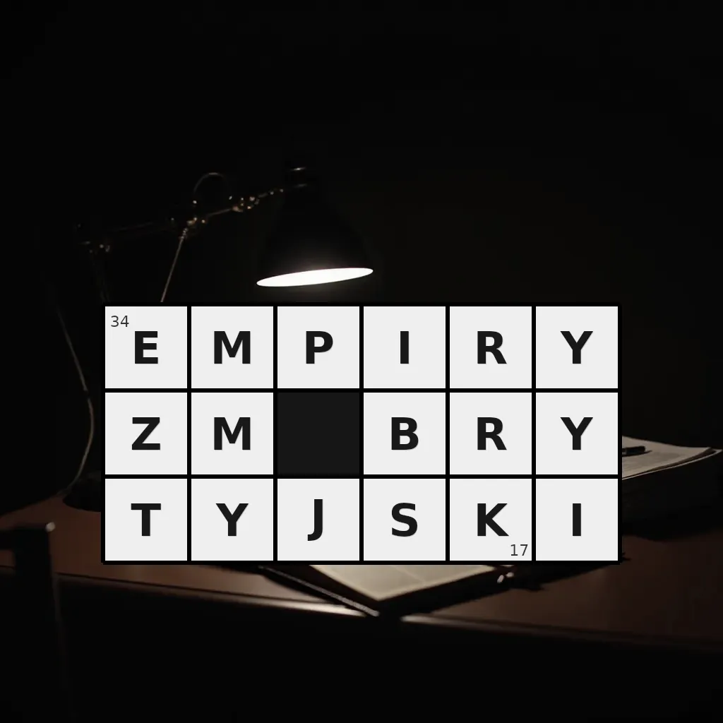 Zawiera litery: B, E, I, I, J, K, M, M, P, R, R, S, T, Y, Y, Y, Z