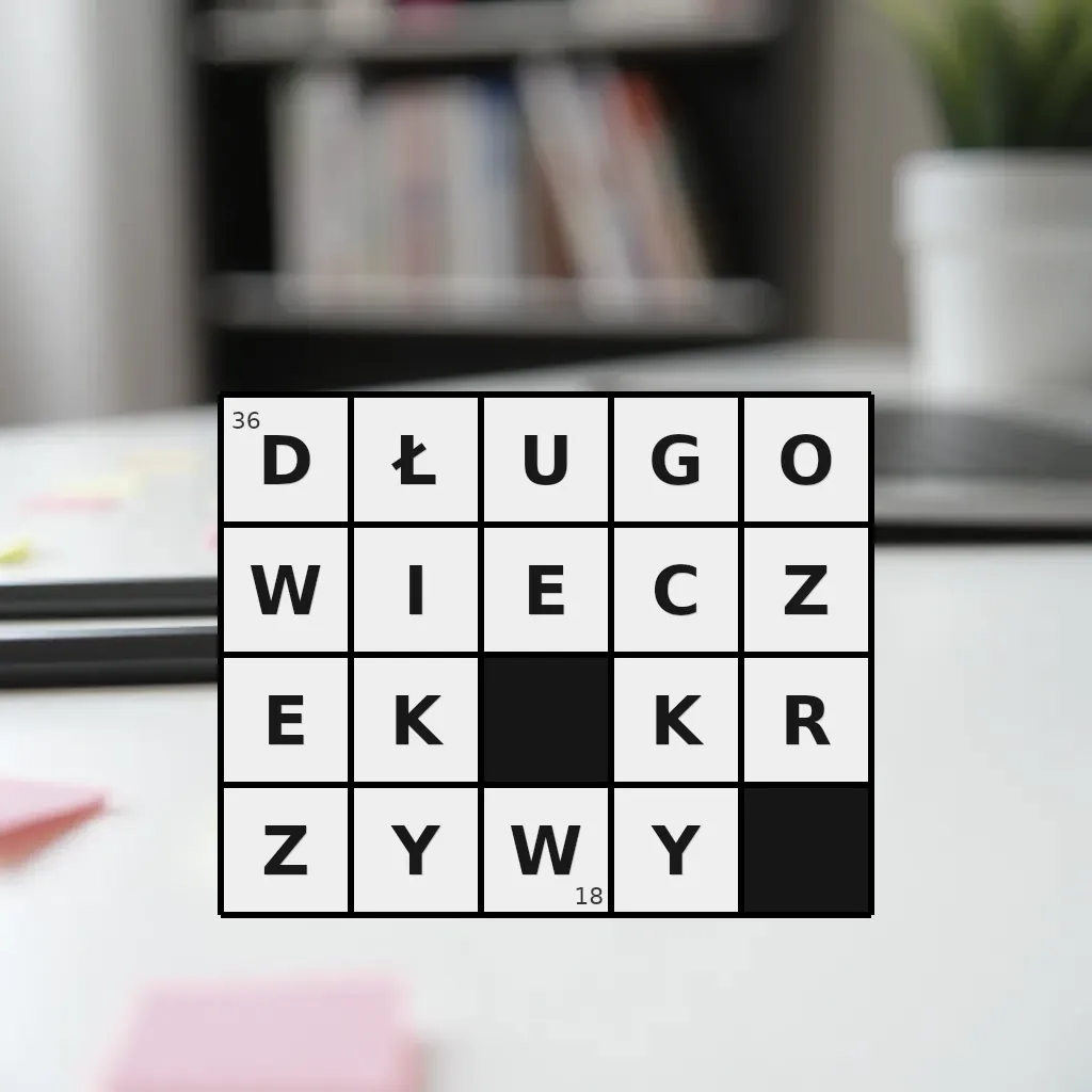 Słowo „długowieczek krzywy” ma 18 znaków (bez spacji i łączników).