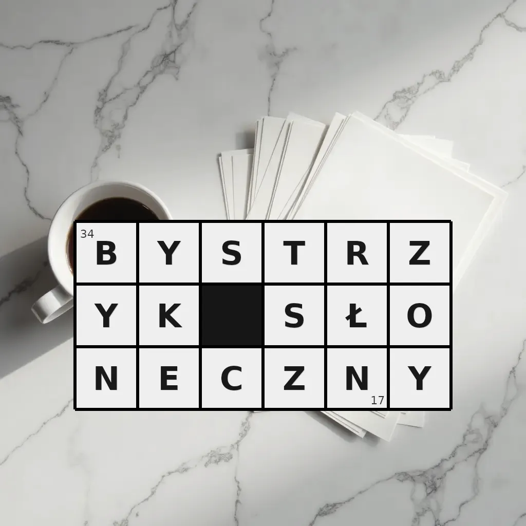 Słowo „bystrzyk słoneczny” ma 17 znaków (bez spacji i łączników).