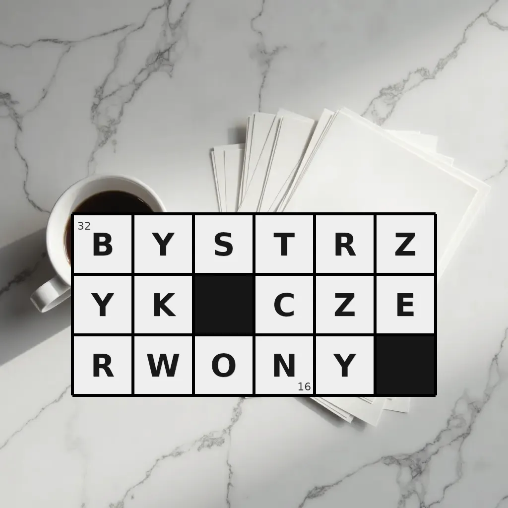 Słowo „bystrzyk czerwony” ma 16 znaków (bez spacji i łączników).