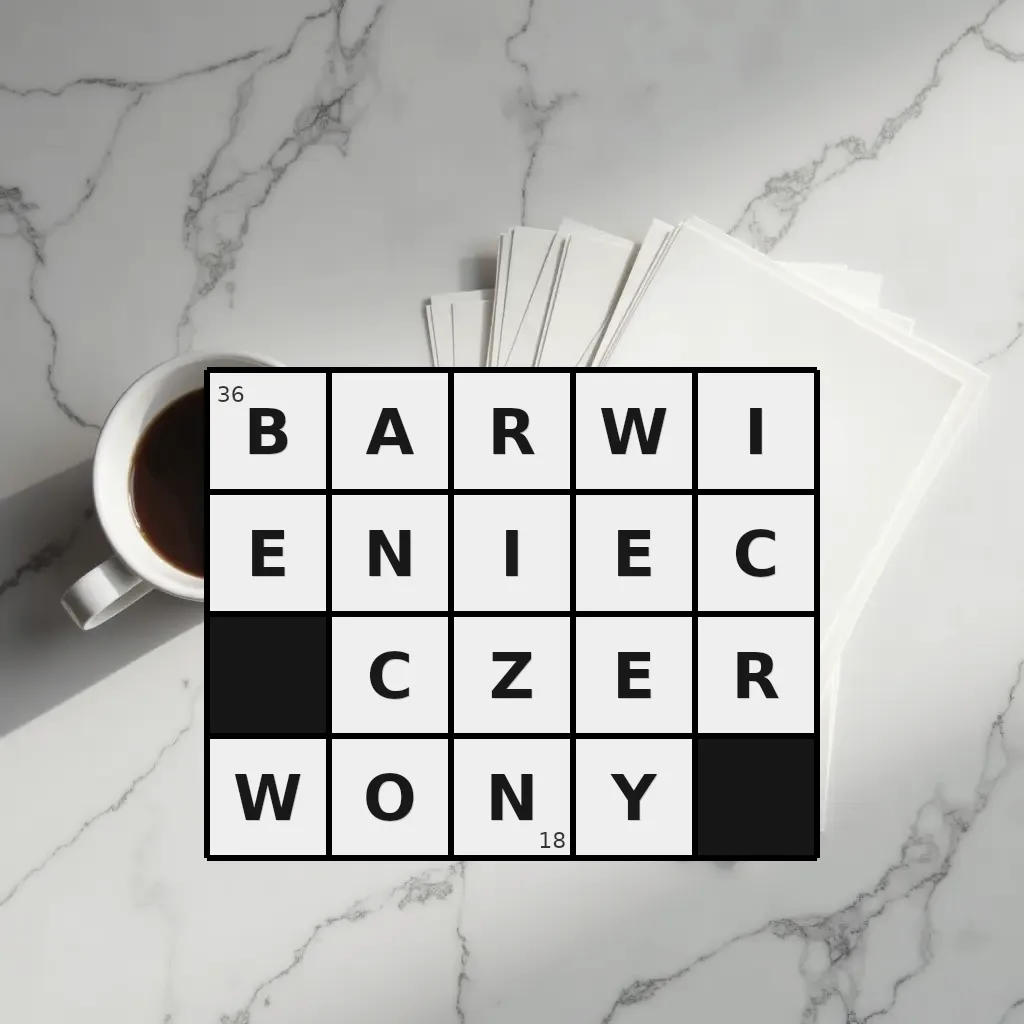 Słowo „barwieniec czerwony” ma 18 znaków (bez spacji i łączników).
