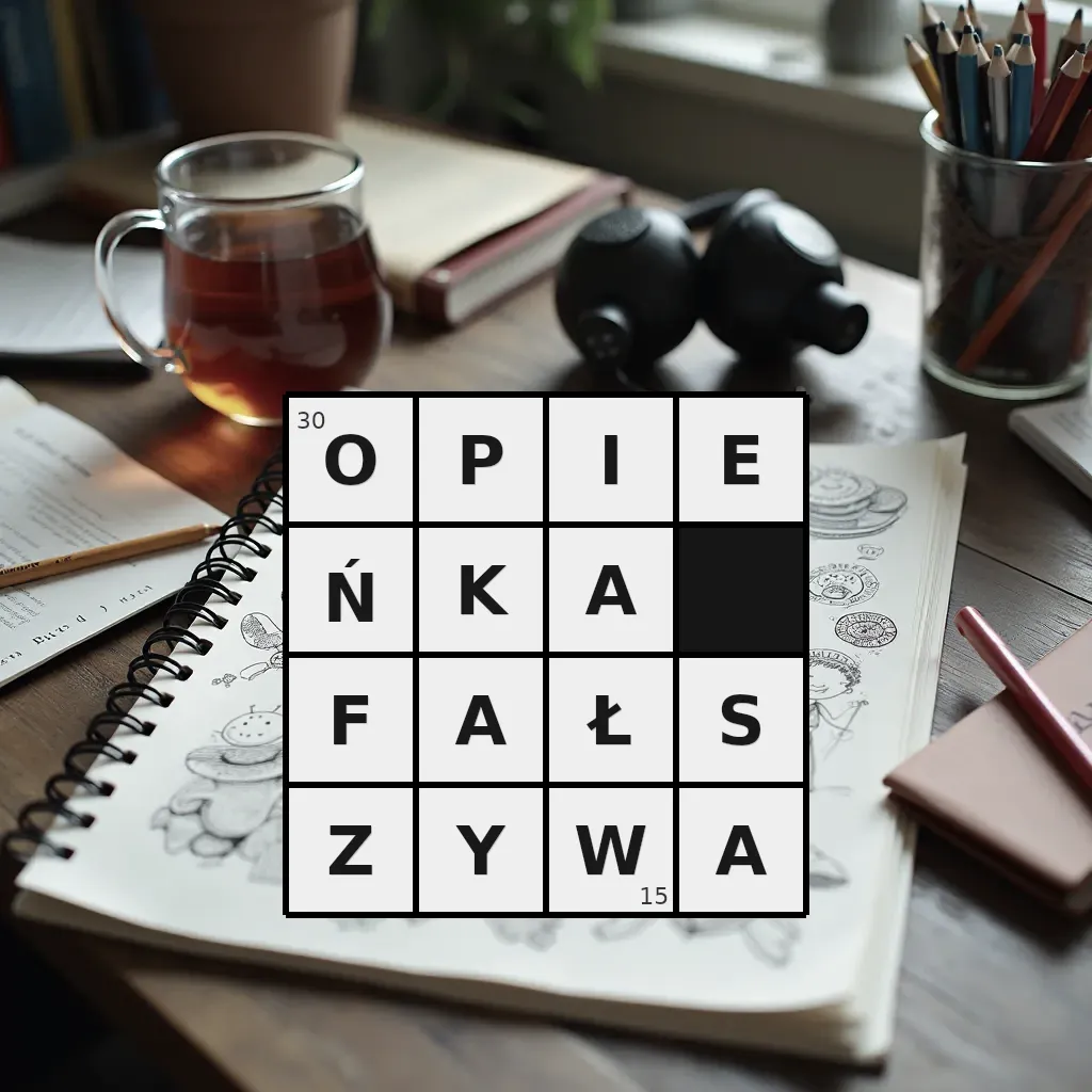 Słowo „opieńka fałszywa” ma 15 znaków (bez spacji i łączników).