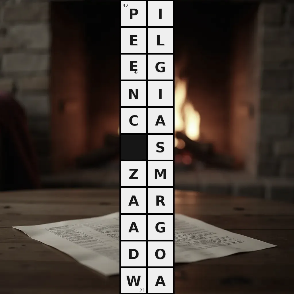 Zawiera litery: A, A, A, A, C, D, E, G, G, I, I, L, M, N, O, P, R, S, W, Z, Ę