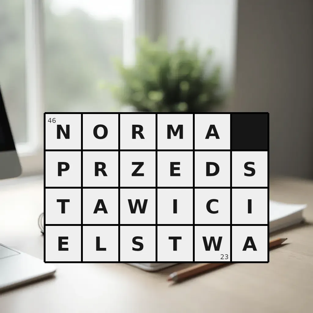 Słowo „norma przedstawicielstwa” ma 23 znaki (bez spacji i łączników).