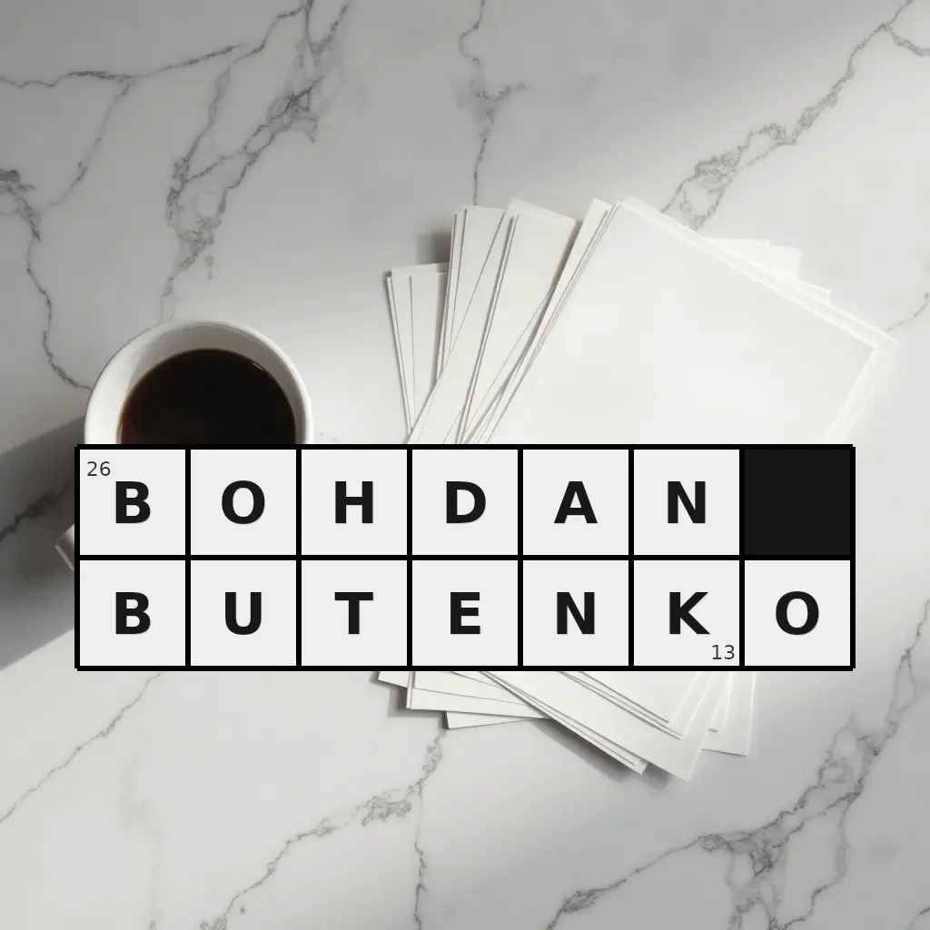 Słowo „bohdan butenko” ma 13 znaków (bez spacji i łączników).