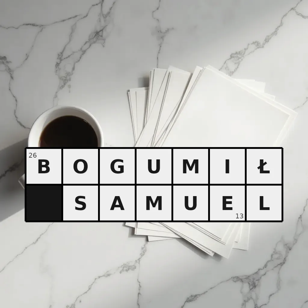 Słowo „bogumił samuel” ma 13 znaków (bez spacji i łączników).