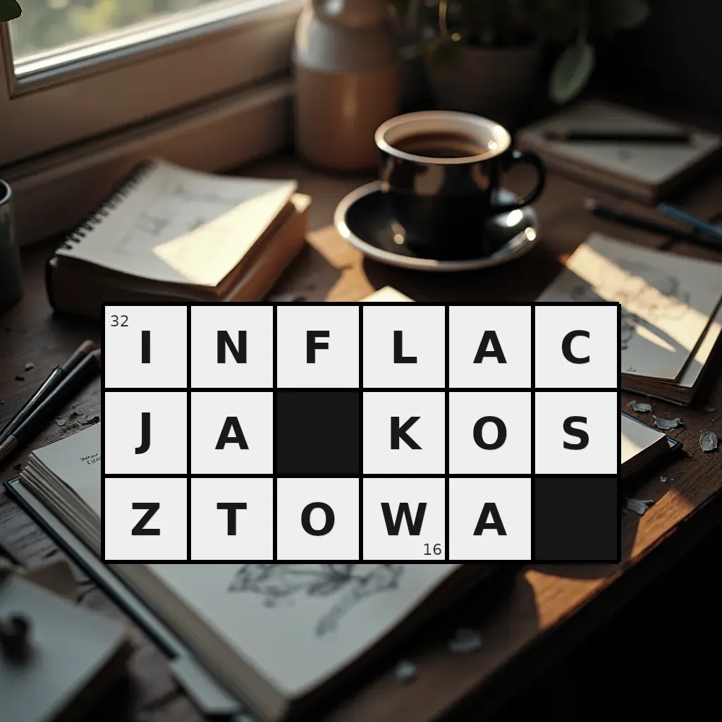 Słowo „inflacja kosztowa” ma 16 znaków (bez spacji i łączników).
