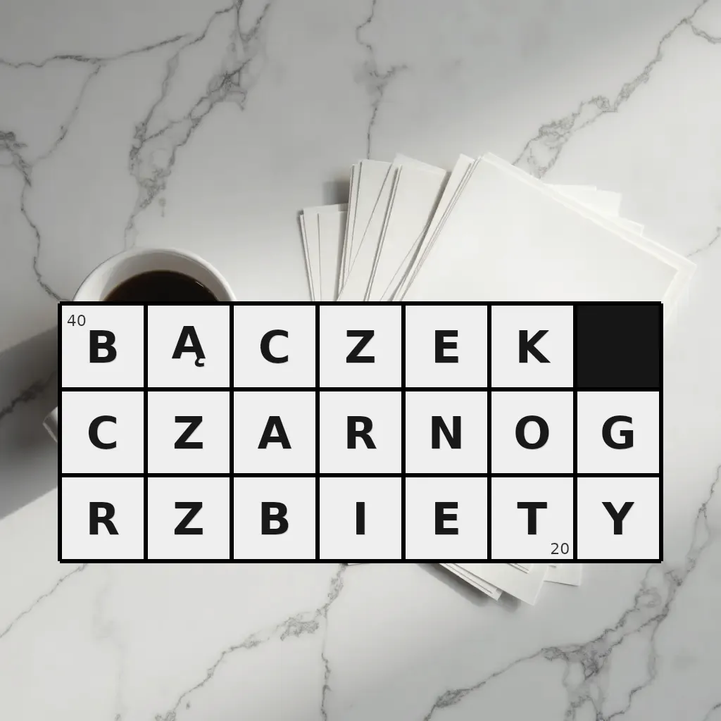 Słowo „bączek czarnogrzbiety” ma 20 znaków (bez spacji i łączników).