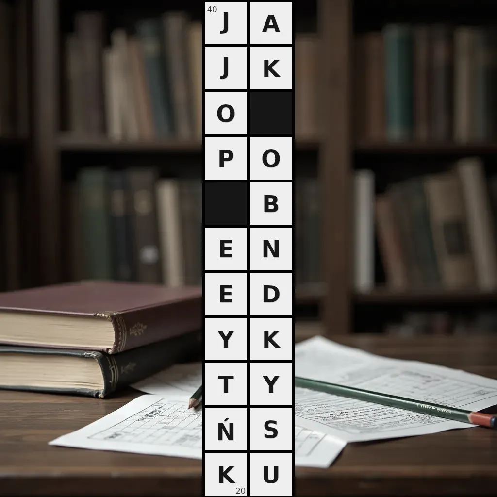 Zawiera litery: A, B, D, E, E, J, J, K, K, K, N, O, O, P, S, T, U, Y, Y, Ń