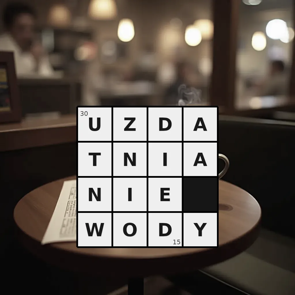 Słowo „uzdatnianie wody” ma 15 znaków (bez spacji i łączników).