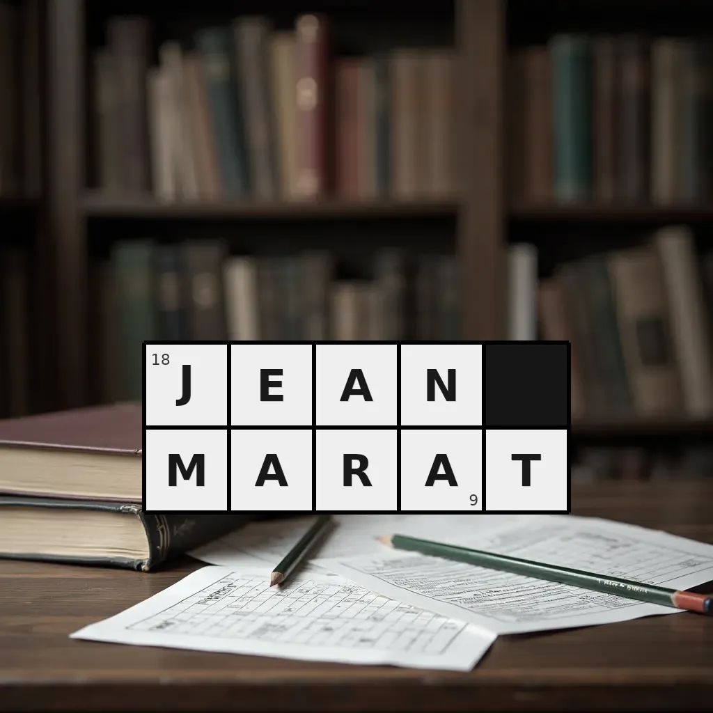 Słowo „jean marat” ma 9 znaków (bez spacji i łączników).